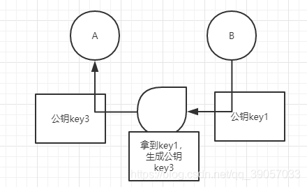 小A不知道公钥key1被偷偷换过,以为key3就是小B发送的公钥,所以用key3加密自己生成的非对称密钥key2发送给小B