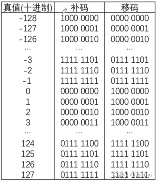 在补码的基础上将符号位取反。注意:移码只能用于表示整数