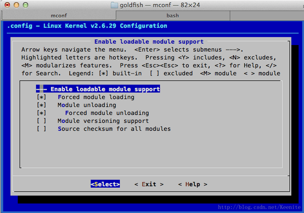 [*] Enable loadable module support ---> (选中这一项,按空格即可)