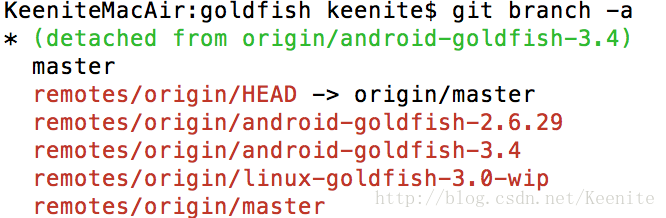 然后使用如下命令切换到goldfish-3.4分支