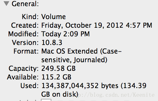 首先,在MAC中编译源码需要的文件系统格式是case-sensitive的,对所要存储代码的盘查看其信息,可知其是否case-sensitive